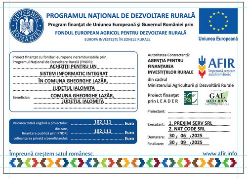Mulţumesc în numele locuitorilor, tuturor vizitatorilor, pentru că aţi avut curiozitatea şi dorinţa de a afla cât mai multe despre noi, gândindu-vă poate că veţi descoperi oportunităţi de afaceri de orice natură, să sperăm că vă vor îndemna să investiţi în comuna noastră, asigurându-vă cu responsabilitate de existenţa unei administraţii publice locale deschise şi transparente. Cu siguranţă în urma informaţiilor primite, veţi găsi măcar un lucru care vă va capta atenţia şi dorinţa de a cunoaşte pe viu frumuseţea unică a acestor meleaguri, oamenii prietenoşi, ospitalieri şi farmecul unei comune primitoare.